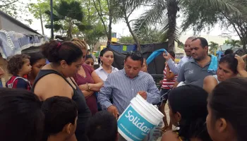 Días después del terremoto, un equipo de producción fue a filmar en Manta y Portoviejo la entrega de seguros para los clientes damnificados del Solidario. Esperaban toparse con escenas de pesar, de destrucción. Un anuncio de esto fue ver el moderno aeropuerto de Manta acordonado, y en su reemplazo carpas militares para recibir y enviar a los pasajeros....